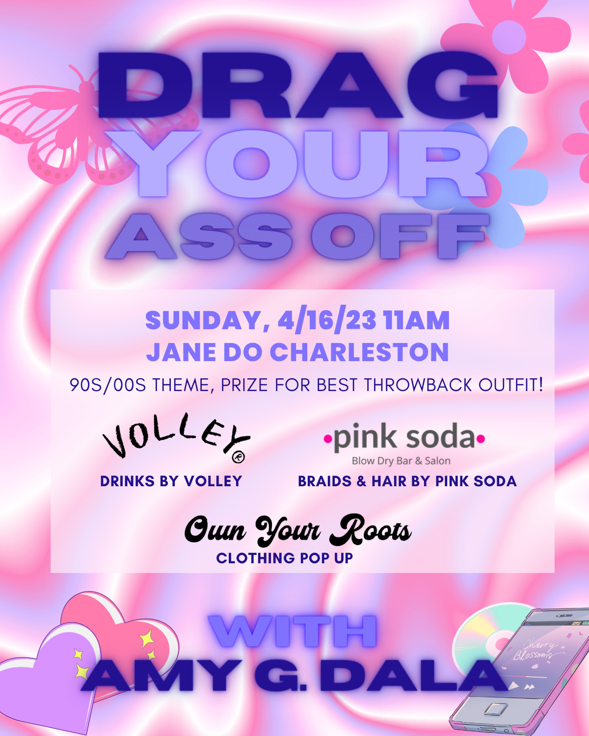 Join us for the next DRAG Your A$$ OFF Dance Party! Shop, sweat, drink some clean tequila seltzers and enjoy braids and hair styled by Pink Soda. See you there!