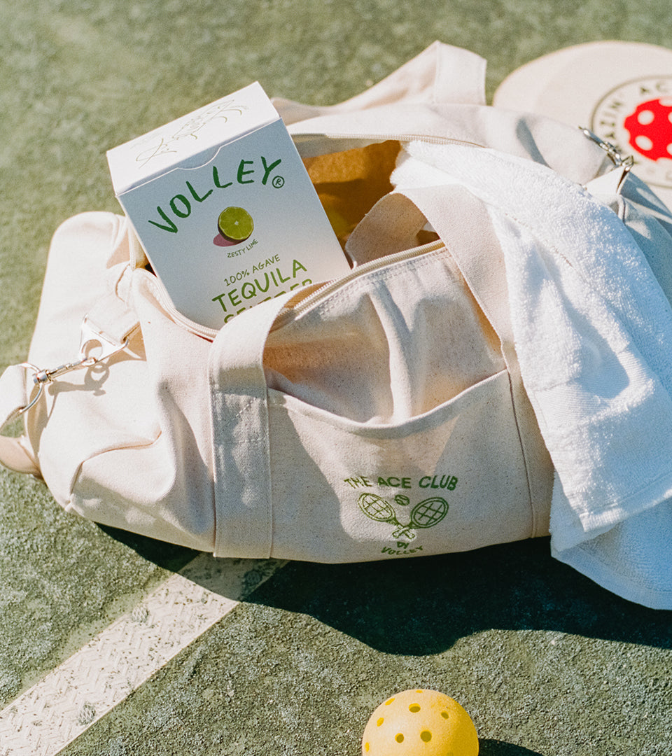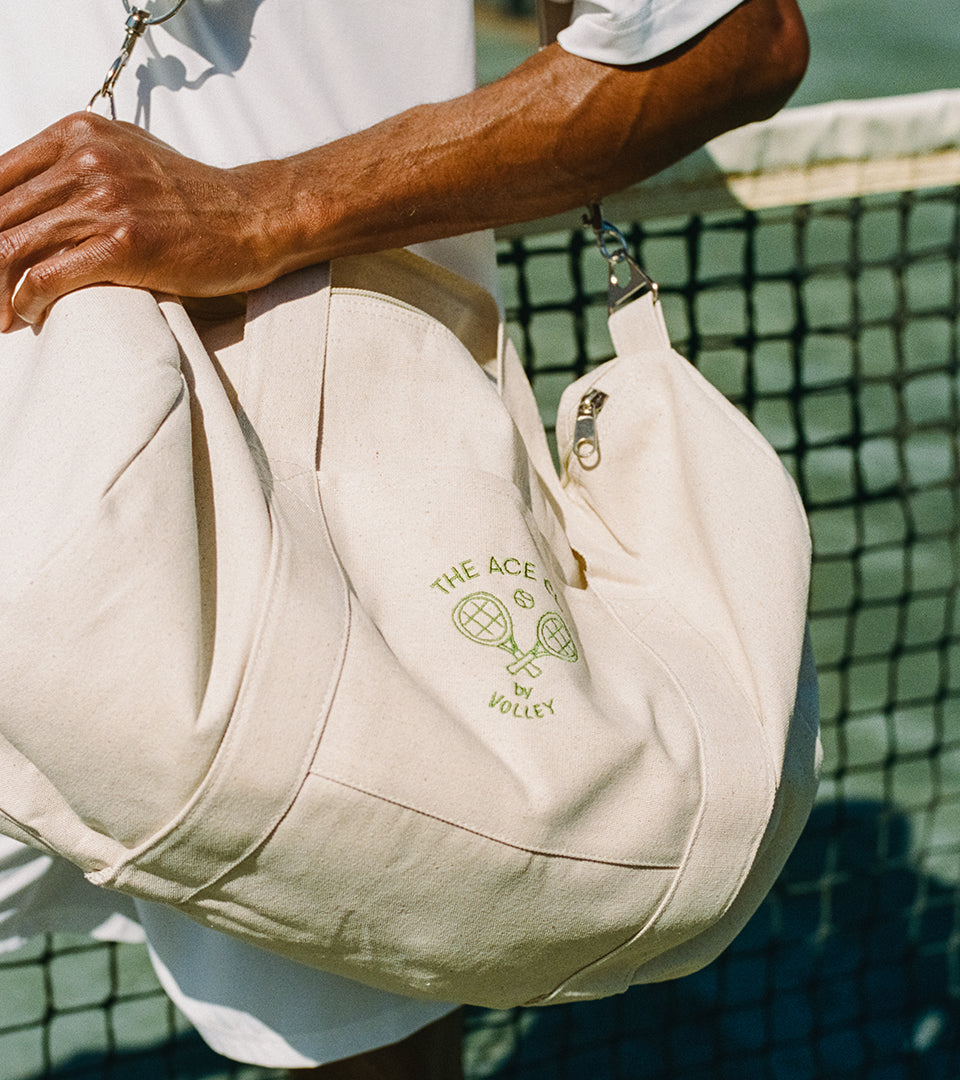 The bag features a spacious main compartment with a secure zip closure, providing ample room for your gear, whether you're headed to the tennis court, gym, or a weekend getaway. The exterior boasts a stylish embroidered "THE ACE CLUB by VOLLEY" logo.